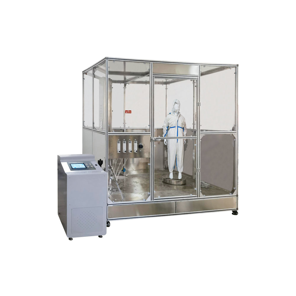 防護(hù)服噴濺噴射測(cè)試裝置適用于酸堿類化學(xué)品防護(hù)服噴濺噴射液密性的測(cè)試。